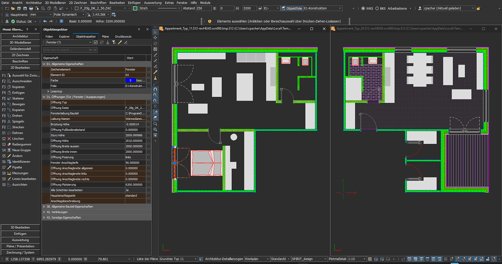 Ein wesentlicher Vorteil liegt in der Kompatibilität: Mit den gängigen Austauschformaten DWG, DXF und PDF funktioniert der Datentransfer reibungslos. In Projekten mit externen Fachplanern oder bei der Zusammenarbeit mit kommunalen Bauämtern zeigt sich das in der Praxis. Architekten erhalten Bestandspläne von extern, importieren diese in SPIRIT lite und nehmen darin direkt Änderungen oder Umplanungen vor. Ob es um die Neugestaltung von Wohnräumen oder die Überprüfung und Anpassung der Bestandssituation geht – die ursprüngliche Software ist dabei unerheblich, da alle Daten nahtlos übernommen werden.